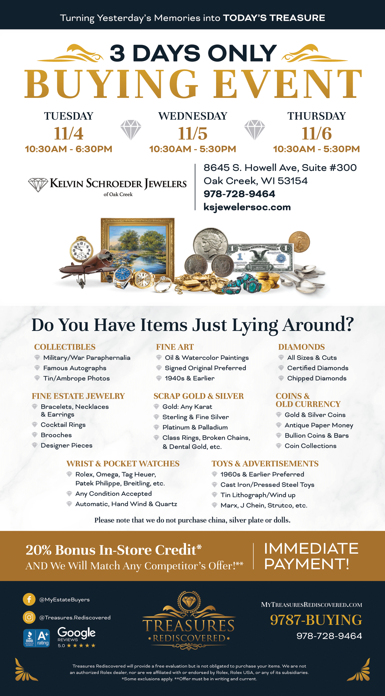 Every jeweler wants your business, but Kelvin Schroeder Jewelers would like the opportunity to earn your business by striving to ensure your complete satisfaction today and onward. Kelvin Schroeder Jewelers provides you with outstanding jewelry and quality service. Our family-owned and operated business has been serving Southeastern Wisconsin since 1937 with phenomenal customer care and fine jewelry made to suit your style. We specialize in ideal cut, top-quality GIA certified diamonds in all shapes and sizes. You get an exclusive lifetime warranty on all our engagement and wedding rings! Whether it's the most current fashions in jewelry or unique and rare gems, we're bound to have something for you.